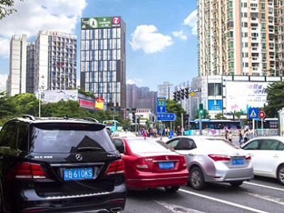 顯示屏位于深南大道南山段與沙河西路交匯處。沙河西路是連接科技園南區、中區、北區的唯一快速干道,廣告位覆蓋大科技園所有過往車輛。